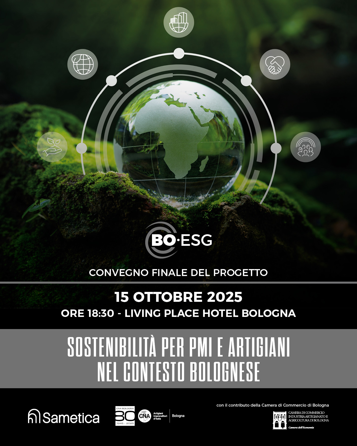 Il progetto BO‑ESG, realizzato da Sametica e CNA Bologna, con il cofinanziamento della Camera di Commercio di Bologna, giunge al suo momento conclusivo con un convegno dedicato al ruolo della sostenibilità come vettore strategico nelle imprese artigiane e PMI dei settori Alimentare, Moda, Meccanica ed Edilizia.